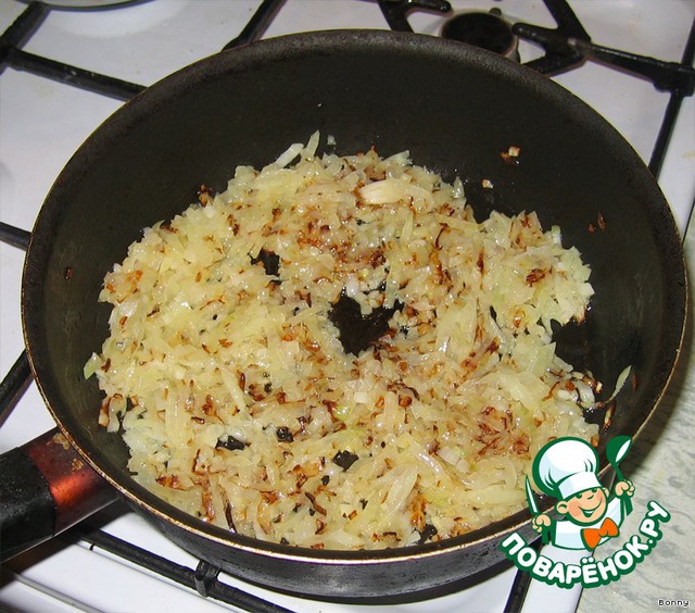 Нарезать помельче и обжарить лук до золотистого цвета.