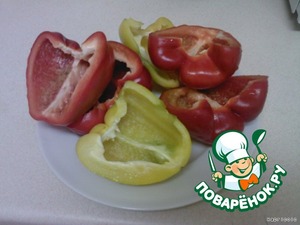В керамическую форму выкладываем перчики и ставим в духовку на 30-35 минут. Выпекаем при температуре 180 градусов.