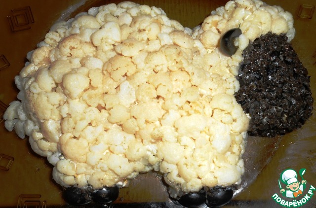 Как вариант оформления отличная идея, кстати я думаю можно шубку овечке и из тертого сыра сделать, мои капусту цветную, к сожалению, есть точно не будут.