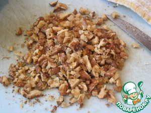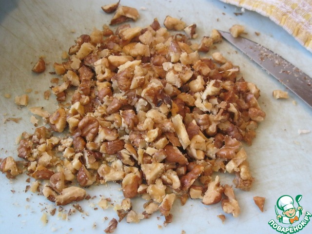 Тем временем грецкие орехи немного прокалить на сухой сковороде, порубить.