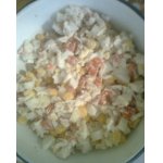 Добавить к салату каперсы. Если не любите каперсы в целом виде, то можно мелко их нарезать и смешать с майонезом.