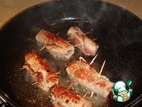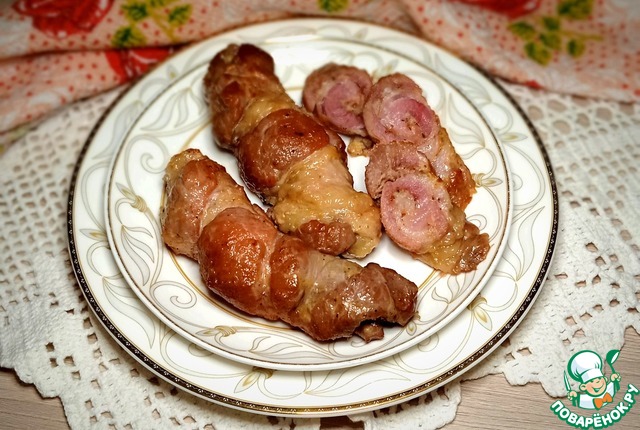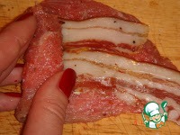 Рецепт «Мясные рулетики, фаршированные беконом и чесноком»: