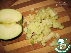 Яблоко очистить от кожуры и сердцевины, нарезать так же, как и картофель.