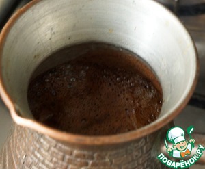 Далее в сухую турку насыпаем чайную ложку коричневого сахара, добавляем молотый с инжиром кофе. Ставим турку (без воды) на небольшой огонь и прогреваем нашу смесь примерно минуты 2-3, слегка двигая турку, как бы перемешивая смесь, как только пойдет аромат, заливаем холодной водой, желательно не кипяченой а родниковой и на маленьком огне доводим до кипения.