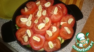 Средний картофель разрезаем по-полам, выкладываем в один ряд. Солим