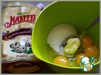 Отложим печенья на время в сторону и приступим к рулету. С тех пор, как я познакомилась с рецептом бисквитного теста от Луки Монтерсино ( который он использует специально для рулетов), то напрочь забыла про все остальные варианты - настолько безукоризненными получались рулеты. Но так как время от времени экспериментирую с выпечкой, то попробовав добавить в тесто немного майонеза, была приятно удивлена! Бисквит не только не потерял в своем качестве, но стал и самодостаточен по вкусу! ( уже три выпечки рулета я делала с добавлением ст. ложки майонеза Махеевъ ). У Луки Монтерсино особая технология замеса теста для рулета. И если следовать ей, то бисквит получается потрясающе нежным и пышным, но при этом очень эластичным. Нам понадобятся четыре яйца. Два яйца разделяем на желтки и белки, а два остаются целыми. В желтки вбиваем эти 2 цельных яйца, добавляем 100 г сахара, ванильную эссенцию по вкусу, 1 ст. ложку майонеза Махеевъ.