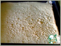 Выкладываем тесто на застеленный пергаментной бумагой противень ( у меня 30х40 см), тщательно разравниваем и отправляем в предварительно разогретую до 180 град духовку на 12-15 мин. Не передерживать в духовке! Как только бисквит пропечется - сразу достаем. ( можно зубочисткой проверить)