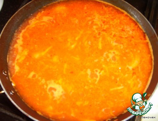 Залить полученной массой уложенный в кастрюлю перец и говить в течение 30 минут.
