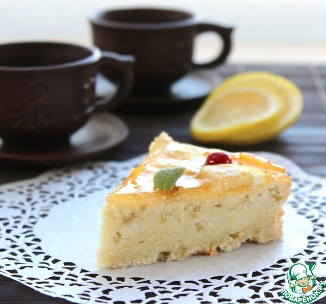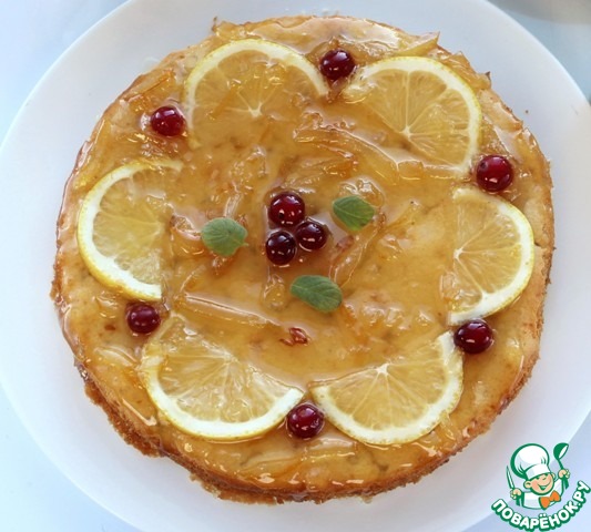 Выложила на корж лимонные дольки, залила джемом, поставила на час в холодильник.
