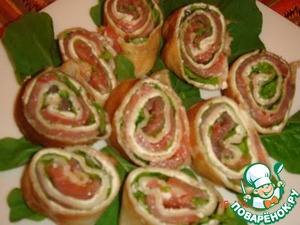 Сворачиваем довольно плотным рулетиком. Только не переусердствуйте, иначе блинчик может разорваться.