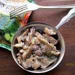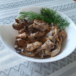 Вешенки моем, даем стечь воде, нарезаем крупной соломкой.
