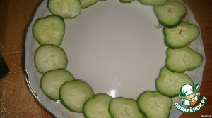 Нарежьте огурцы кружочками и уложите в тарелку.