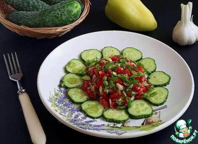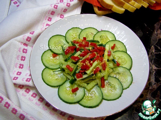 Рецепт «Огуречный салат с чесноком "Огурчик"»: