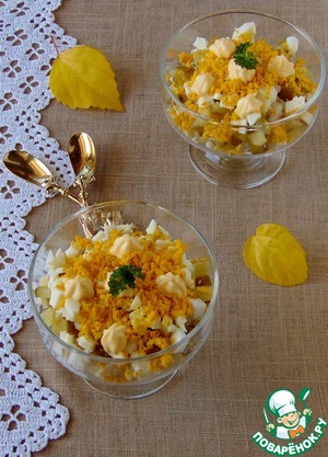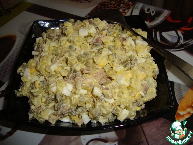 И еще, у нас в семье как-то не особо слоеные салаты в почете...Мы любим перемешать и чтобы напиталось хорошо)