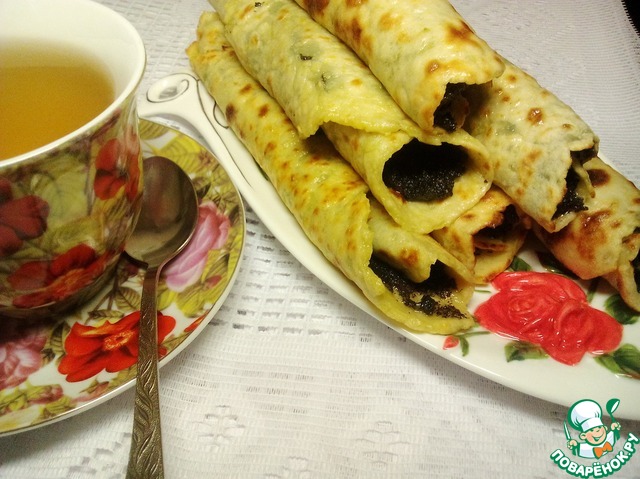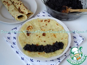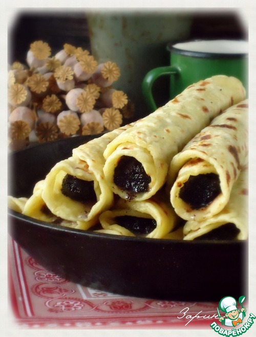 Начинить лепешки маковой начинкой, скручивая их в трубочки.