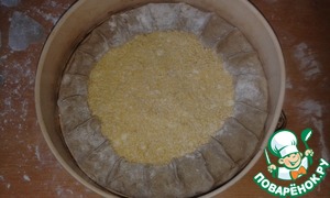 Выложить тесто на смазанную маслом форму и равномерно распределить начинку