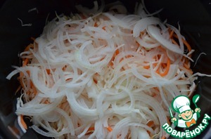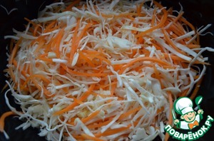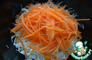 Морковь натереть на корейской тёрке, соеденить с капустой.