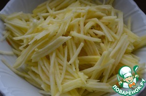 Яблоко, очестить от кожуры, натереть на корейской тёрке и сбрызнуть лимонным соком.