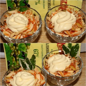Перед подачей на стол заправляем майонезом "Махеевъ", украшаем зеленью. |