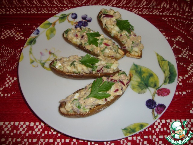 Рецепт «Салат из тунца на запеченном баклажане»: