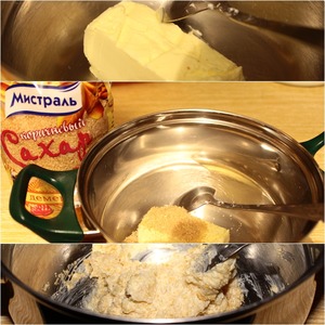 Сливочное масло комнатной температуры растереть с двумя ст. л. тростникового сахара Демерара от Мистраль.
