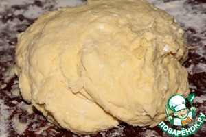 Тесто должно получиться пышным, нежным и практически не липнуть рукам. Выкладываем на поверхность стола, присыпанную мукой.