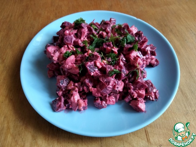 Для приготовления салата нам понадобится свекла (я ее предварительно запекала в фольге в духовке при 200*С минут 45, также можно просто ее отварить), остудить полностью,