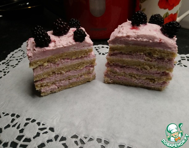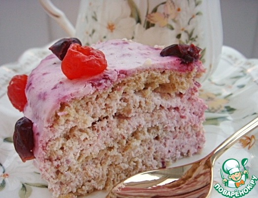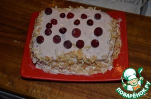 Коржи сначала проливаем водой с сахаром (сиропом), затем покрываем творожным кремом. Украшаем сверху оставшимися ягодами. Можно по бокам присыпать воздушным рисом, или украсить ананасовыми дольками. Ставим в холодильник на ночь.