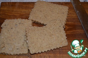 Когда тесто испечется, вынимаем и, немного охладив, разрезаем его на тонкие 4 коржа (примерно по 0,5 см каждый). Если разрежите на 3, как у меня сегодня, творожный крем немного останется.