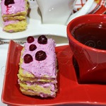 В творог добавляем 2 ч. л. сахара и пробиваем с ягодами (ягоды можно предварительно не размораживать). Пробиваем не сильно, чтобы ягоды остались крупными фракциями. Часть ягод оставляем для украшения десерта. Это-наш творожный крем. В воду добавляем 1 ч. л. сахара и хорошо размешиваем, отставляем (сироп).