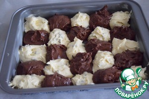 Выкладываем тесто в форму "кляксами", чередуя два разных вида теста. -
