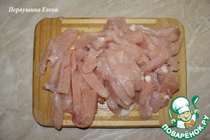 Мясо нарезать полосками и