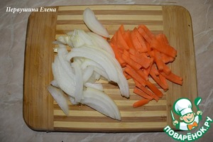 Морковь и лук нарезать соломкой и,