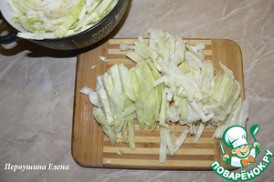 Пока продукты тушатся, нашинковать капусту и