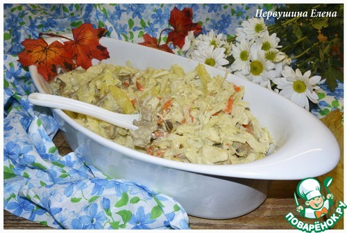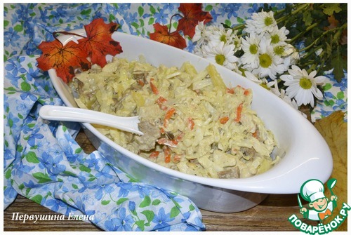 - Грибы (маринованные - у меня вешенки) — 1 стак.