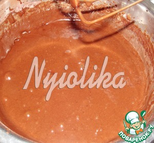 Смешать муку, какао и разрыхлитель, добавить в яично-масляную смесь.
