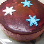 Остывший корж положим обратно в разъемную форму. Бока формы прикрываем пергаментом. Смешаем 1 ст. ложку черносмородинового пюре со второй частью сахарного сиропа и пропитаем корж.