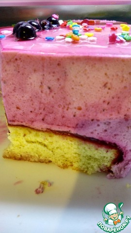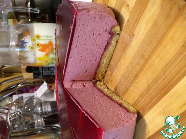 Вкус в готовом торте вроде бы и ничего, но структура мне не очень понравилась, не суфле , а очень плотное желе. Бисквит, естественно, не пропитался , при подаче желе отваливалось от бисквита . Вот, как-то так... Но мне очень хочется все -таки довести этот рецепт до совершенства ( в моем исполнении), и я буду его готовить еще, и еще.