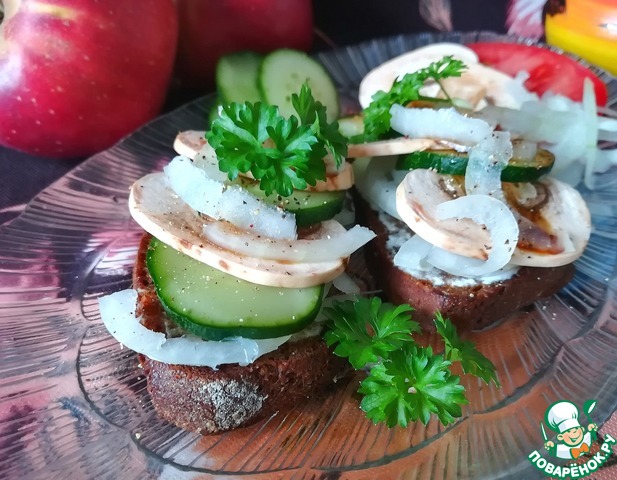 Представляю вам экспресс-рецепт бутербродов со свежими шампиньонами. Готовится на раз, два, и также съедается.