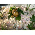 Выкладываем розу на блюдо, огурец порезать тонкими слайсами. Прикрываем зубочистки полоской огурца или зеленью петрушки.