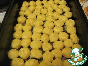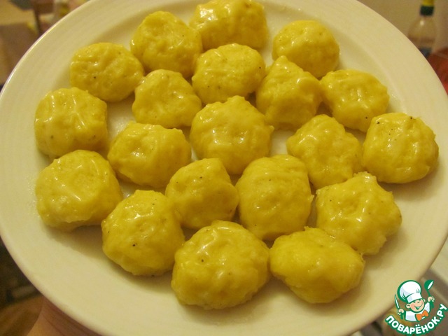 Формируем ньокии и выкладываем в смазанные растительным маслом чаши пароварки. Не пугайтесь что масса липнет к рукам, просто периодически смачивайте руки водой. Оставляем пароварку на 15-20 минут.