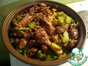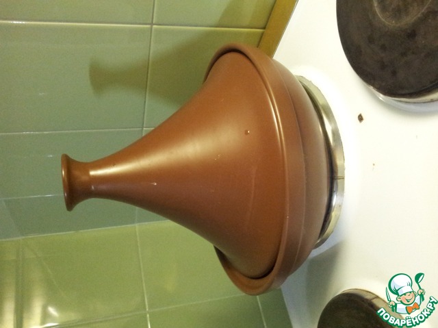 Накрываем крышкой и тушим на среднем огне минимум час, до готовности утки. если нет тажина, можно готовить в утятнице.
