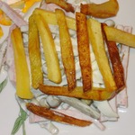 В-третьих картофель вы не совсем верно написали, он не просто обжаривается, кто жарил картофель можно легко определить по фото - там лежат унылые вялые жаренные кусочки полные жира. Картофель делают ФРИ или почти фри. То есть масла наливается не как для жарки а больше, что бы хотя бы половина бруска была в нем. Масло кипит и этим прожаривает картошку совсем по другому, выталкивая из нее воду. Важно вовремя определить готовность, что бы картофель получился не пересушен, потом откидываем на салфетку и даем удалится излишкам жира. Получается сочность еще сохранилась, но он становится хрустящим и сухой снаружи. Можно делать вообще фри и жарить в большом количестве масла, это на любителя, потом так же откинуть на салфетку, для удаления избытков жира.