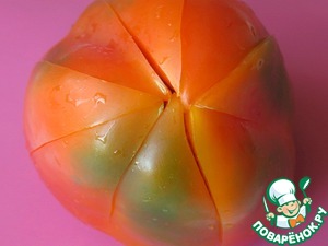 Пока наш перец превращается в красивую "чашечку", мы готовим салат.
