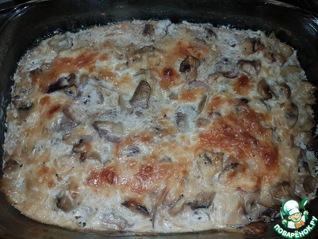 Нежное сочетание филе морского языка (пангасиуса), сливок и шампиньонов.