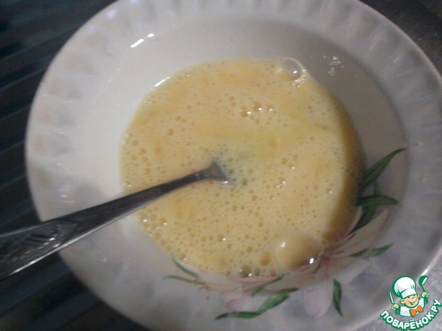 Тем временем немного взбейте яйца с щепоткой соли и перца. Насыпьте в отдельную тарелку муку.