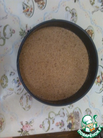 Распределяем смесь по дну формы. Ставим в заранее разогретую духовку до 175 градусов и выпекаем 5 минут, чтобы смесь только схватилась. Потом остужаем.