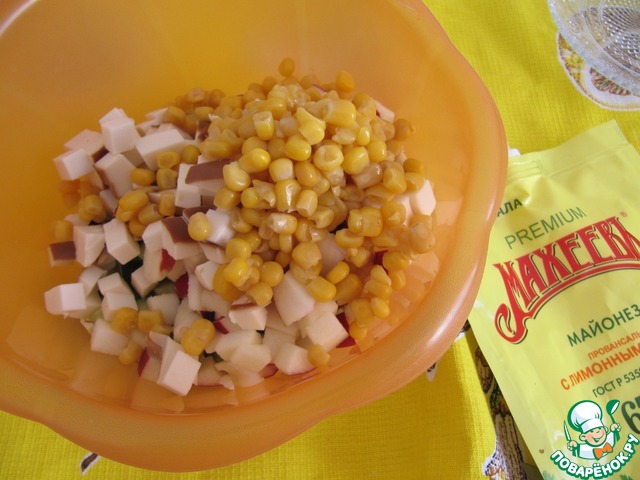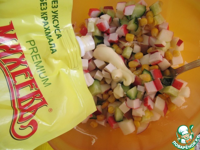 • Добавьте майонез, перемешайте или полейте сверху салата