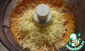 Затем добавляем к морковно-яичной смеси тёртый сыр.