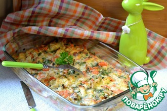 Посыпать тёртым, твёрдым сыром и поставить в разогретую духовку при 200 градусах, на 20-25 минут.